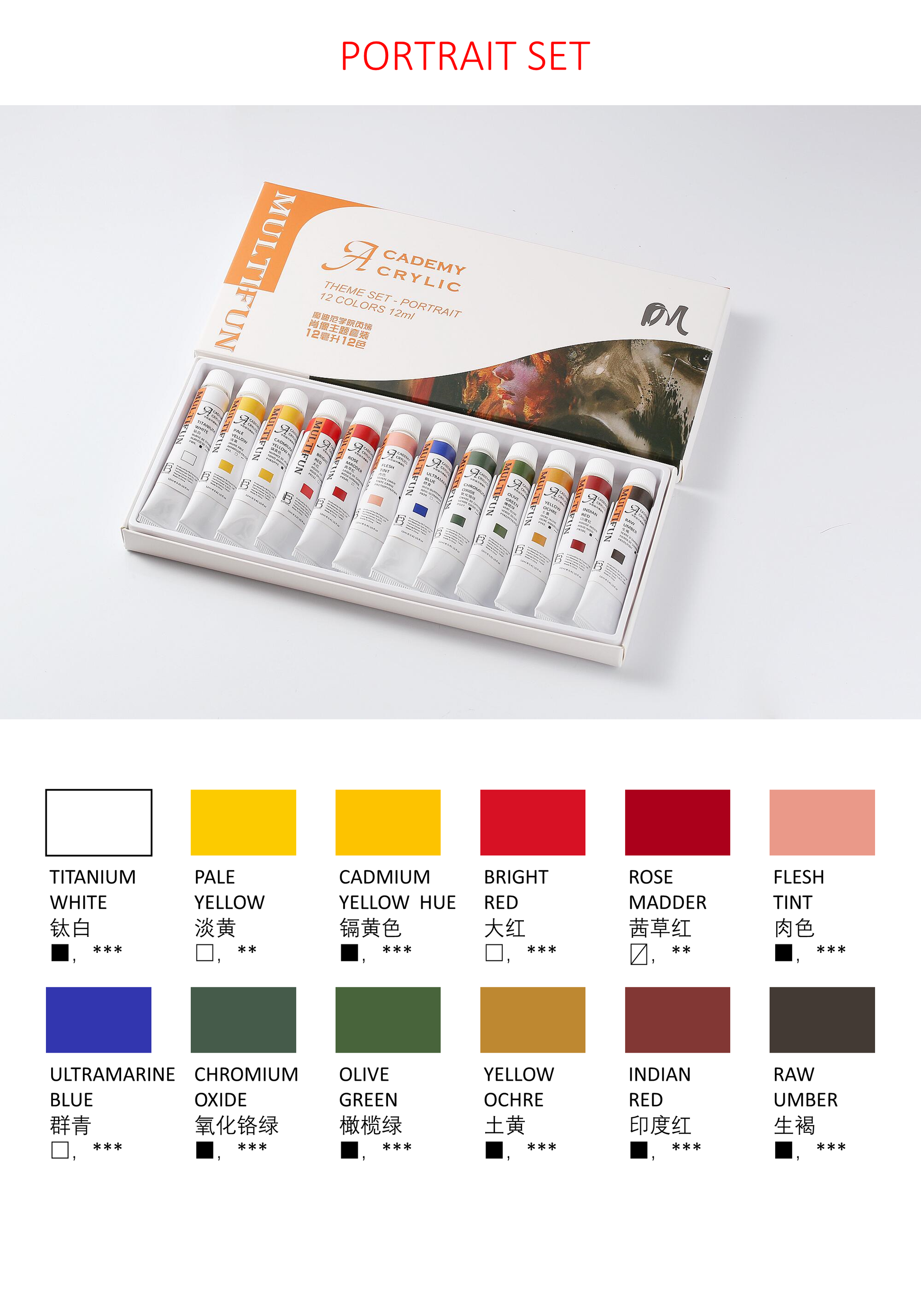 MULTIFUN ACADEMY FINE ACRYLIC THEME SETS 12ML 12 COLORS